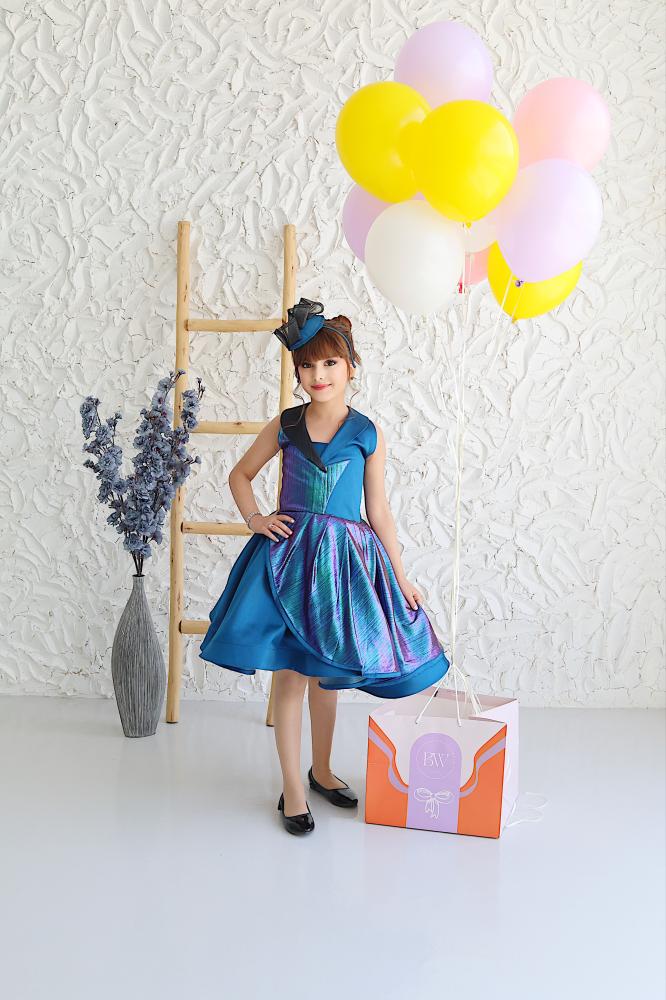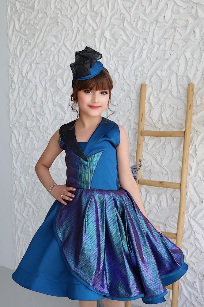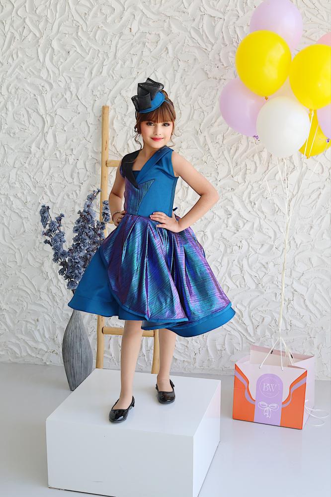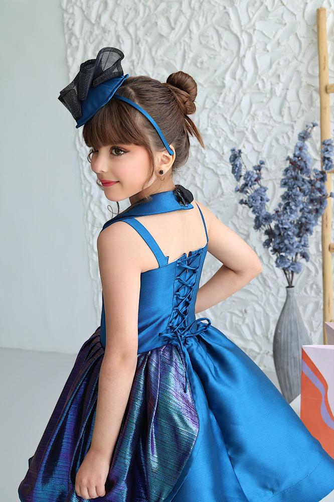 # فستان راقي وفخم باللون الأزرق الملكي مع تفاصيل لامعة وقصة أنيقة تمنح طفلتك حضوراً استثنائياً