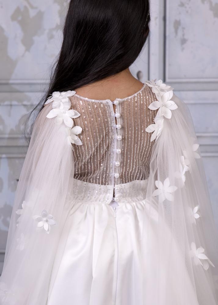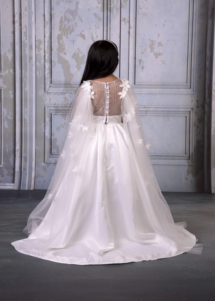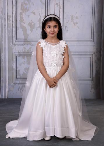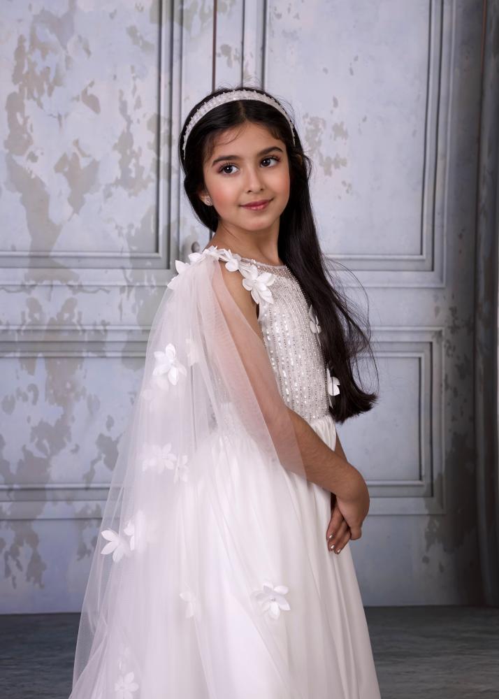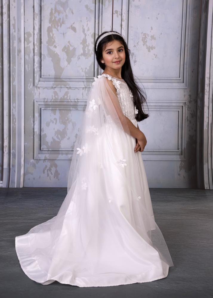 # فستان أبيض ملكي منفوش ذو ذيل طويل، للمناسبات ولكل الأعمار